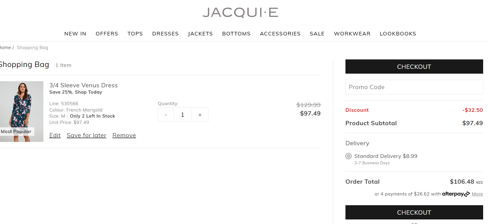Your shopping bag can be accessed by selecting the shopping bag icon on the top right hand side of the website.